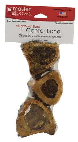 This is an all-natural treat with tasty meat pieces in the center. It’s made from USA beef femur or tibia bone cut in 1-inch slices.