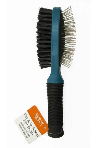 - 2-in-1 tool features a pin brush on one side a bristle brush on the other
