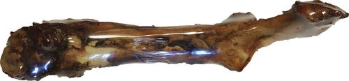 This mammoth bone is best for medium to large dogs. This mammoth beef bone has meaty pieces on the whole bone and is dipped in liquid smoke.