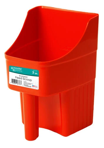 The best all-around scoop you?ll ever use is right here! With an enclosed design, it reduces spillage to make life easier for you. This enclosed feed scoop also has built-in graduation marks to make measuring feed, supplements, and seed easy. The scoop is designed with a flat bottom, which allows you to set the scoop down without it constantly tipping over, and makes for easy stacking.