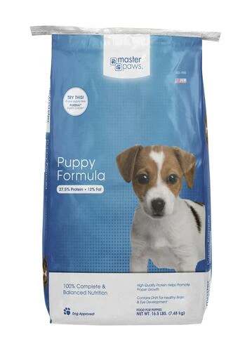 This puppy food is appropriate for all breeds of puppies. It features high-quality protein to promote growth as well as DHA for healthy brain and eye development.