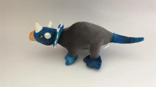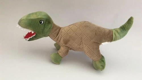 This small dog toy features a unique dinosaur shape and an internal squeaker. The fun squeaking sounds signal playtime to your dog while the soft comfortable plush is perfect for cuddling and naptime.