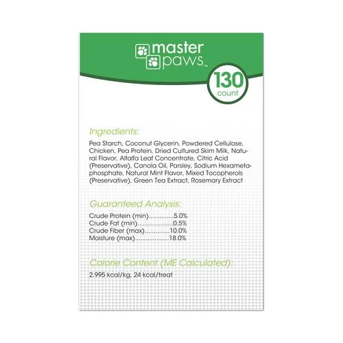 These all natural dental dog chews feature a chicken flavor that your dog will love while also freshening their breath. Help keep your dogs teeth in good health with these dental chews that reduce plaque and tartar build-up. Made with all natural ingredients, these treats are delicious and keep your dog healthy. Tiny-sized treats are ideal for very small dogs.